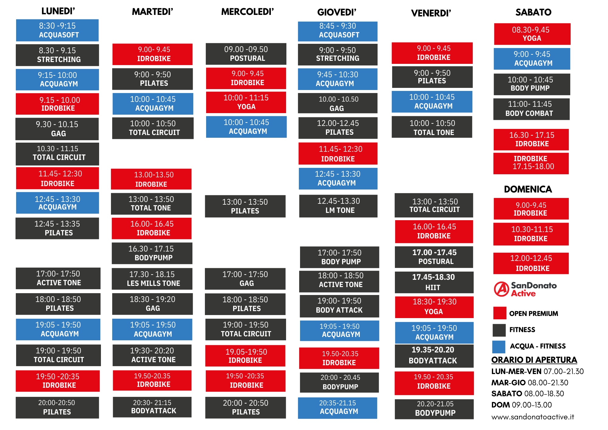 Scarica qui il programma e allenati nel club più completo di San Donato Milanese!